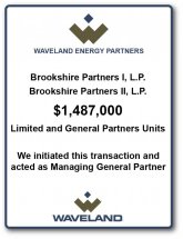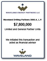 Over the past 20 years, Waveland Energy Partners has sponsored or served as managing general partner for more than 40 energy programs. Waveland has been active in the Mid-Continent region in Oklahoma since 2002, the Permian Basin in Texas since 2012, the San Juan Basin in New Mexico since 2016, and the Williston Basin since 2018. We invest alongside many of the largest and most active E&P companies in North America. Please view the below tombstones of Waveland’s portfolio of investment activities.