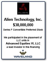 At his prior firm, Waveland CEO Michael Greer sourced this transaction in 1998 and led both a bridge financing in late 1998 and an equity financing in the first two quarters of 1999. During the equity financing, with the assistance of Mr. Greer and his firm, the company negotiated the sale of its Neptune™ fluid waste management system to Stryker Corporation (NYSE:SYK) for a multi-year royalty payout estimated to ultimately exceed $30 million.
